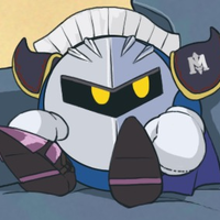Meta Knight is a major character in the Kirby series. He is the leader of an army of soldiers known as the Meta-Knights, and captains a large airship called Battleship Halberd. Due to Meta Knight's way of doing things and his often-hidden intentions, he has been seen as either a bitter rival or a steadfast ally to Kirby.