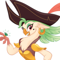 Once a brash and bold explorer, Captain Celaeno is now relegated to serving as a mere messenger for the Storm King. But when she discovers the ponies aboard her ship, they help remind her of how awesome she once was and encourage her to return to her adventurous and courageous ways. She plays a big role in helping the ponies stand up to the Storm King!