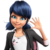 This is the main girl from Miraculous ladybug. When she is Marionette she is shy, but as Ladybug her true hero shines