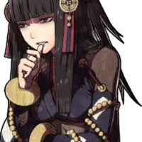 Rhajat is a loner, preferring to stay away from others, especially those who she has no interest in. Her non-sibling supports with Shigure indicate that she used to suffer serious power incontinences when she was younger, leading her to be feared and to isolate herself from other people in fear of hurting them and being rejected.Rhajat has a particular obsession with the Avatar after they saved her from a Faceless ambush at the end of her paralogue. She also tells them that it started when she was young and energetic, as she almost fell off a cliff if not for the Avatar who saved her and she changed her personality after that incident.Her relationship with her father comes off initially as cold and condescending because she is technically older than he is, however, It is revealed that her cold personality is a means to mask her loneliness due to being raised in the Deeprealms by herself. When Hayato insists on bonding with her no matter what, she actually breaks down crying. This shows that even though she is older than Hayato is, she nevertheless cares a great deal about him.Rhajat also cares a great deal about her mother, wanting said mother to trust her despite the opinions of others, such as the villagers in their supports. They also reveal that she's quite singleminded in her non-Avatar pursuits, like when she completely focuses on finding a cure to an illness despite being mistaken as the source of said sickness in the first place.